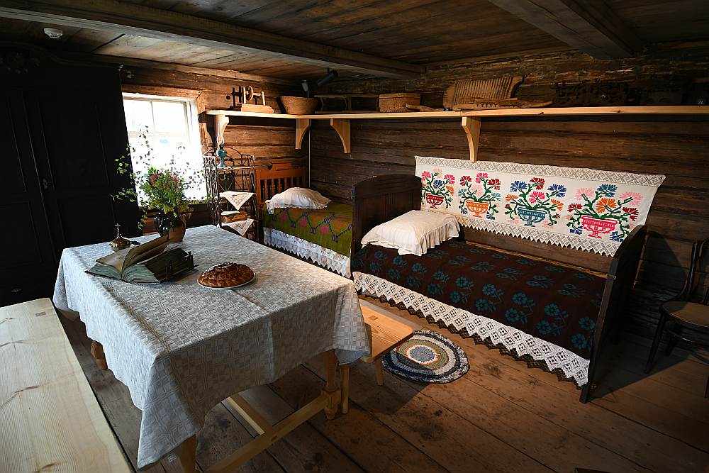 Restaurētajā mājā ir iekārtota ekspozīcija “Lūgšanu istaba”, kura atspoguļo 20. gadsimta sākuma vecticībnieku dzīvojamās istabas interjeru – “Sarkano stūri”, kurā apskatāmi reliģiskā kulta un sadzīves priekšmeti, melno jeb ķēķa kaktu ar krievu krāsni, plīti un virtuvē izmantojamiem priekšmetiem. Telpas centrā ir saimes galds un lauku sētas interjera priekšmeti.
