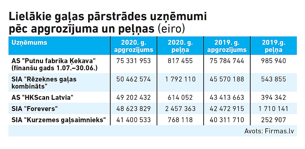 Līdzīgās domās arī nozares flagmaņa – AS “Putnu fabrika Ķekava” – valdes priekšsēdētājs Andrjuss Pranckevičjus, norādot, ka uzņēmums vairs nestrādā Krievijas tirgum, tā vietā kā stratēģiskos eksporta tirgus izvēloties Baltiju un Skandināviju. “Eksporta portfelī nav Krievijas kompāniju, tādēļ tiešā veidā pret Krieviju noteiktās sankcijas mūs neietekmē, bet netiešu ietekmi izjūtam. No Ukrainas iepirkām izejvielas un iepakojamos materiālus, kuru piegādes šobrīd nav iespējams prognozēt.