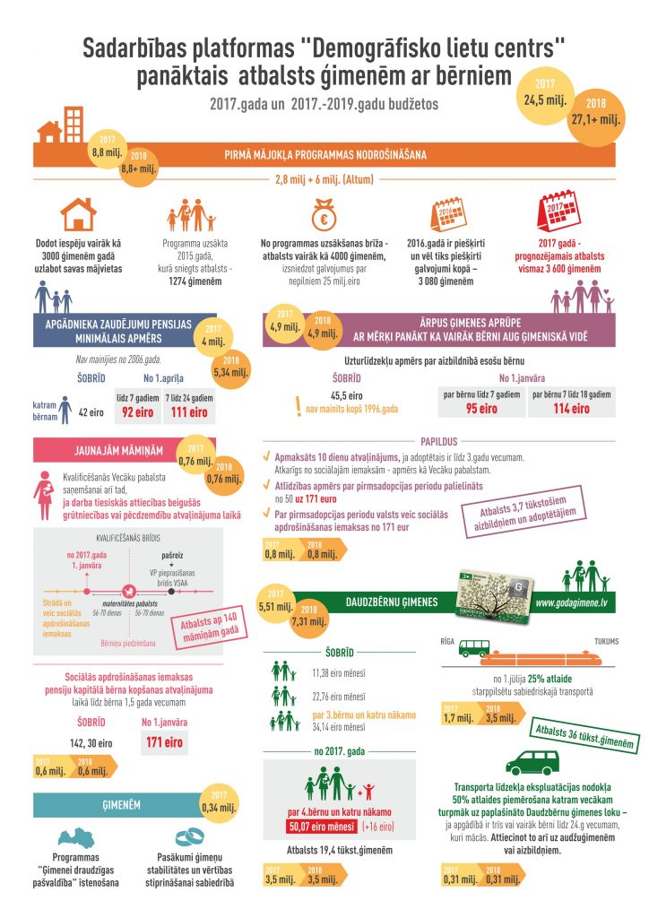 Infografiks: 2017.gada valsts budžetā jauniekļautie demogrāfijas pasākumi