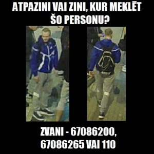 Valsts policijas Rīgas reģiona pārvaldes Centra iecirkņa policisti aizdomās par personīgo mantu nolaupīšanas faktu meklē attēlā redzamo vīrieti.